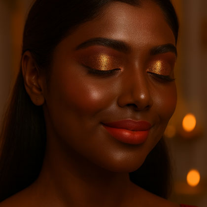Fresh leaves, glowing skin. Green flatters honey tones with earthy depth and playful edge. Swipe to discover your green power move.
