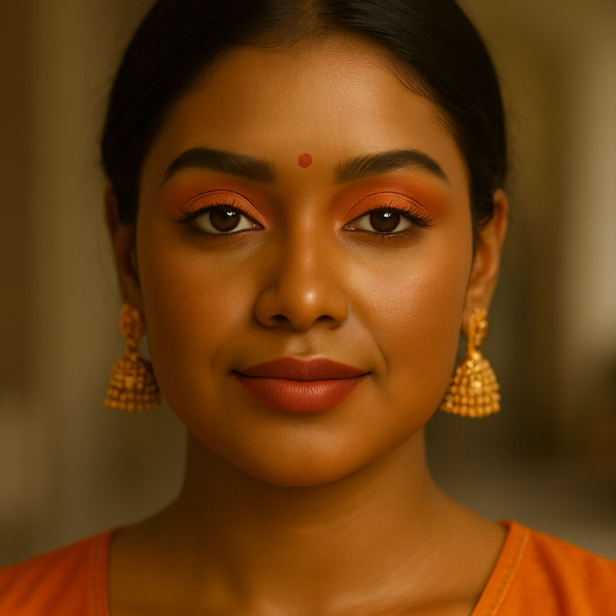 Orange on honey glow is festival fuel. Bright, balanced, and impossible to dim. Swipe to find the shade that keeps the fire dancing.