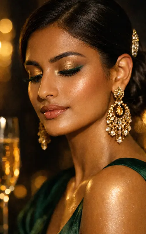 Fresh leaves, glowing skin. Green flatters honey tones with earthy depth and playful edge. Swipe to discover your green power move.